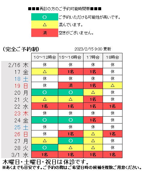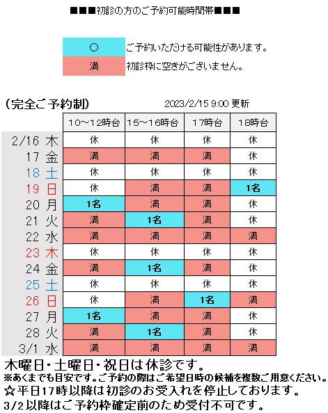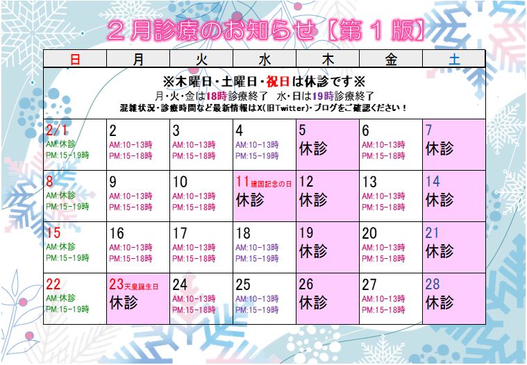 ●2月11月(水)・2月23日(月)は祝日のため休診とさせていただきます。