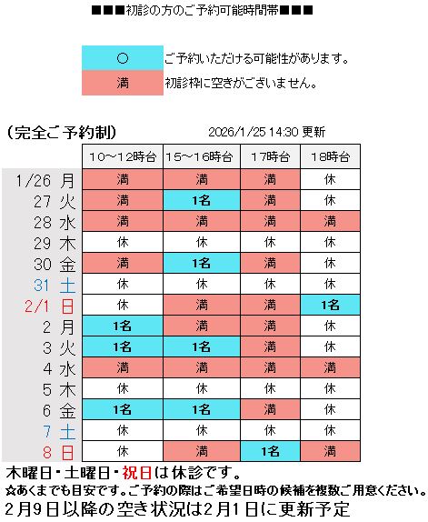 ●2月11月(水)・2月23日(月)は祝日のため休診とさせていただきます。