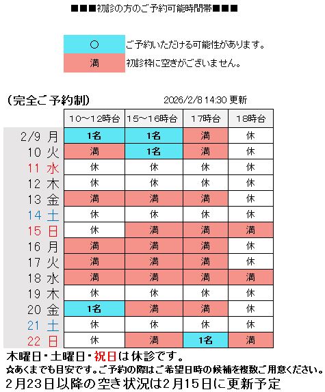 ●2月11月(水)・2月23日(月)は祝日のため休診とさせていただきます。