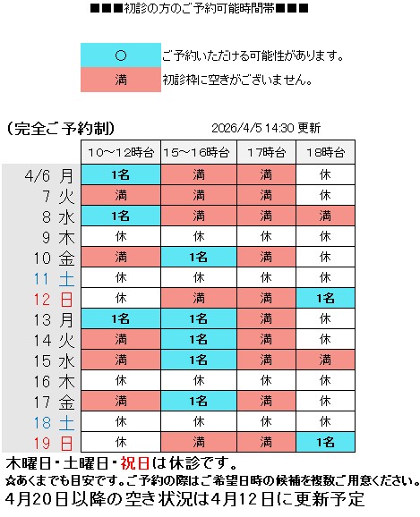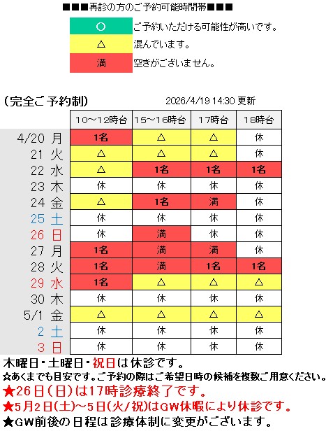 ●4月26日(日)の診療は17時終了となります。